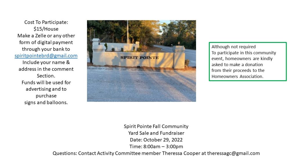 Spirit Pointe Fall CommunityYard Sale and Fundraiser